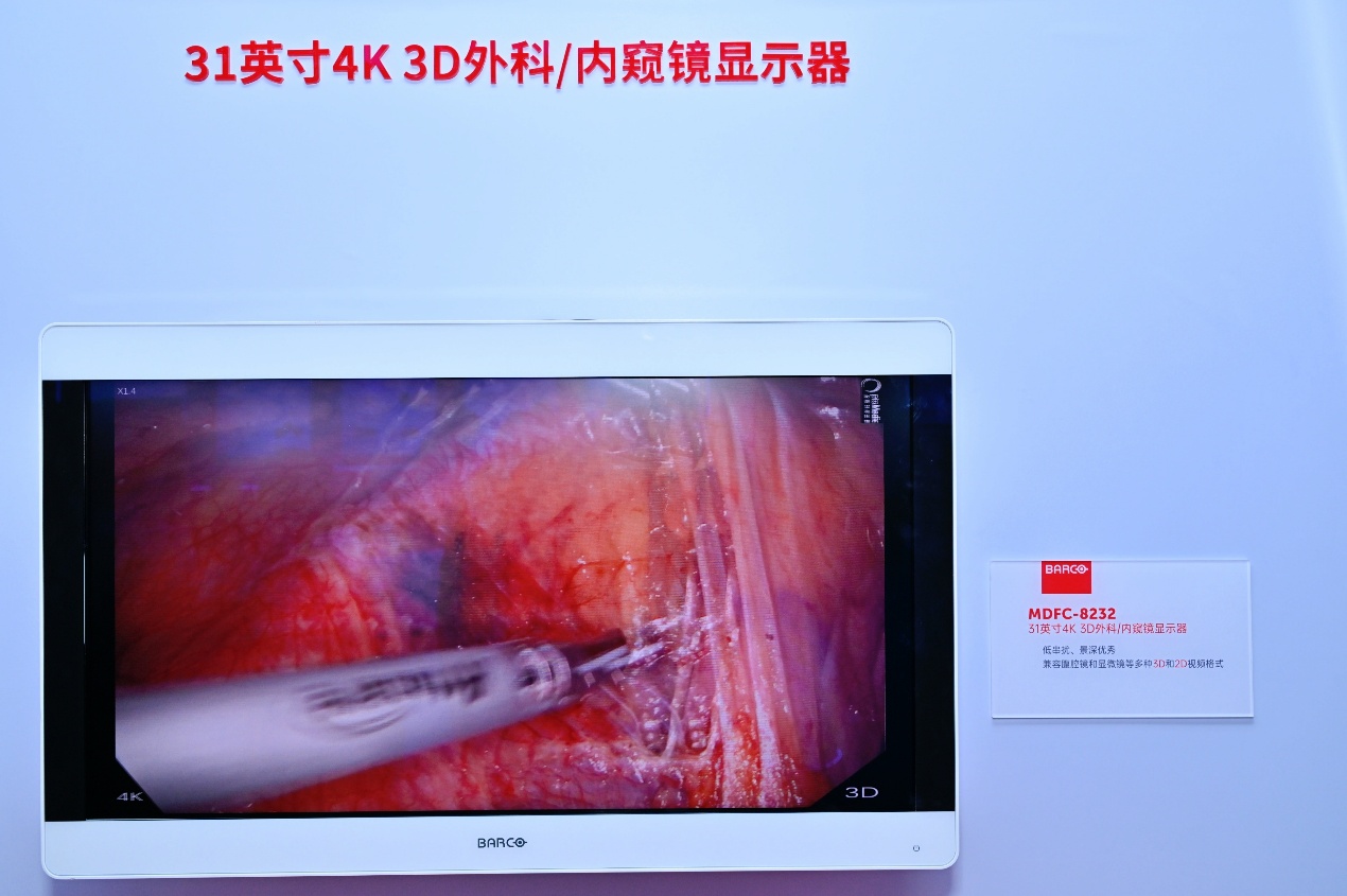 在现代医疗中,外科显示器作为外科医生精准诊断和手术操作的重要工具,扮演着举足轻重的角色。巴可在本届CMEF中重点展示了可以应用于内科的消化内镜中心27英寸FHD多模态医疗级ITE显示器MDAC-2327,4K外科手术和内窥镜显示器MDAC-8431和4K 3D外科医用监视器MDFC-8232,以及55英寸4K UHD多模态医疗级ITE显示器MDAC-8455等,满足现代手术室的高清、精准影像显示需求。
